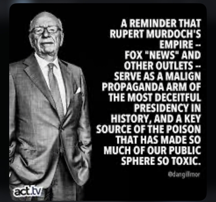 These are just some of the examples of how Rupert Murdoch and his sinister political creation Fox have used their influence to undermine our democracy. The world has been demonstrably worse off due to the network’s refusal to have journalistic standards. Brainwashing millions of American citizens into believing their hateful rhetoric. They are the principal reason the MAGA movement is still thriving. So yes I agree with President Joe Biden, Rupert Murdoch is the most dangerous man in the world. It comes with great delight that we can announce that he will no longer be at the helm of his repugnant brainchild Fox News. C U Next Time Rupert!✌️😎🖕