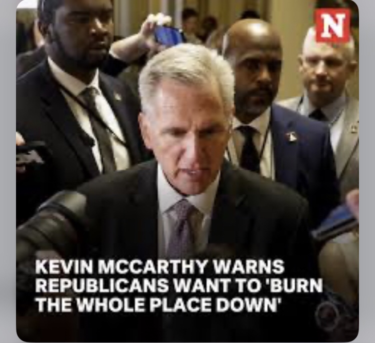 At this point, Kevin McCarthy should lose his job as Speaker if he won’t govern bipartisan for the good of the country. When he can’t even convince his fellow Republicans to get on board. Allowing the extremist Right Wing to bring down the American economy and destroy the lives of those millions who rely upon the government to function is a dereliction of duty. Until We the People vote Republicans, who refuse to do the job they are elected to do, out of office. Holding the government hostage will become commonplace. With Republicans it’s never been about governing for all the people it’s always been about their self-serving interests.
