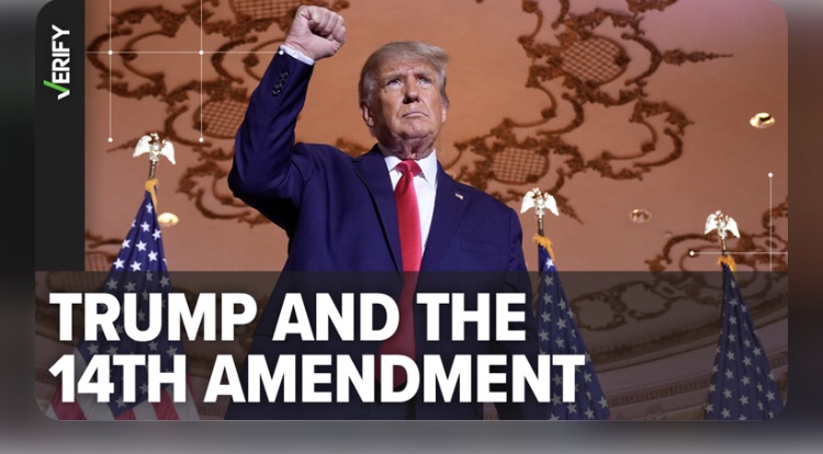 The 14th Amendment section 3 states: “Disqualification from Holding Office.No person shall be a Senator or Representative in Congress, or elector of President and Vice-President, or hold any office, civil or military, under the United States, or under any State, who, having previously taken an oath, as a member of Congress, or as an officer of the United States, or as a member of any State legislature, or as an executive or judicial officer of any State, to support the Constitution of the United States, shall have engaged in insurrection or rebellion against the same, or given aid or comfort to the enemies thereof.”