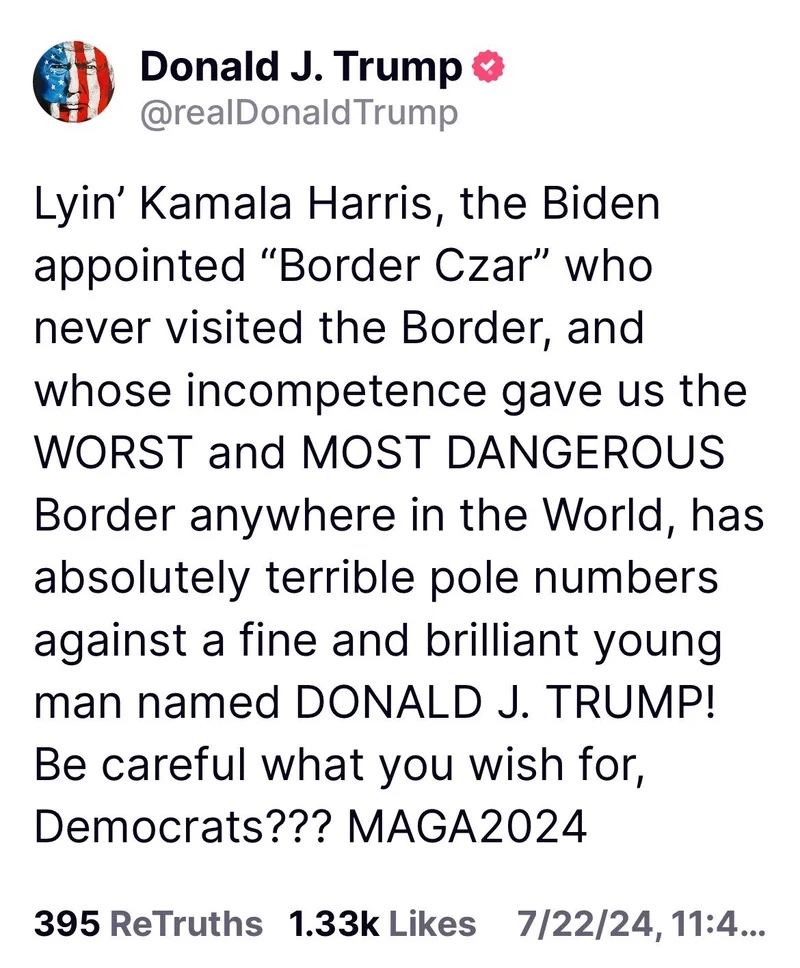 Meanwhile, Donald Trump and his scared shitless allies revealed just how unprepared and fearful they are presently. After Harris’s sudden meteoric rise to the top of the Democratic ticket. So In between Trump’s more frequent diaper changes and cheating at golf. The paper-thin-skinned deviant was frantically rage-posting his hysterical thoughts on his much saner opponent. Trump himself, a $6,000 Harris donor, back when she was California’s Attorney General. Now he suffers severe night sweats and irritable bowel syndrome. At the mere thought of losing to the Dem Queen Bee. So much so that Trump has ordered his MAGA fanboys to file baseless articles of impeachment on Harris. The MAGA Republican equivalent of a toddler’s temper tantrum. It’s clearly a bad sign, when compared to the humiliated and recently resigned Secret Service boss, Trump’s future looks rather bleak.