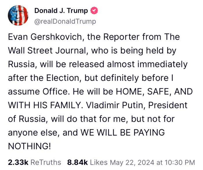 I Thought Only Trump Could Get His Pal Putin To Release The Prisoners