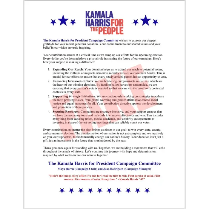 Another Letter Explains How The Harris Campaign Is Involved In Voter Fraud Tactics