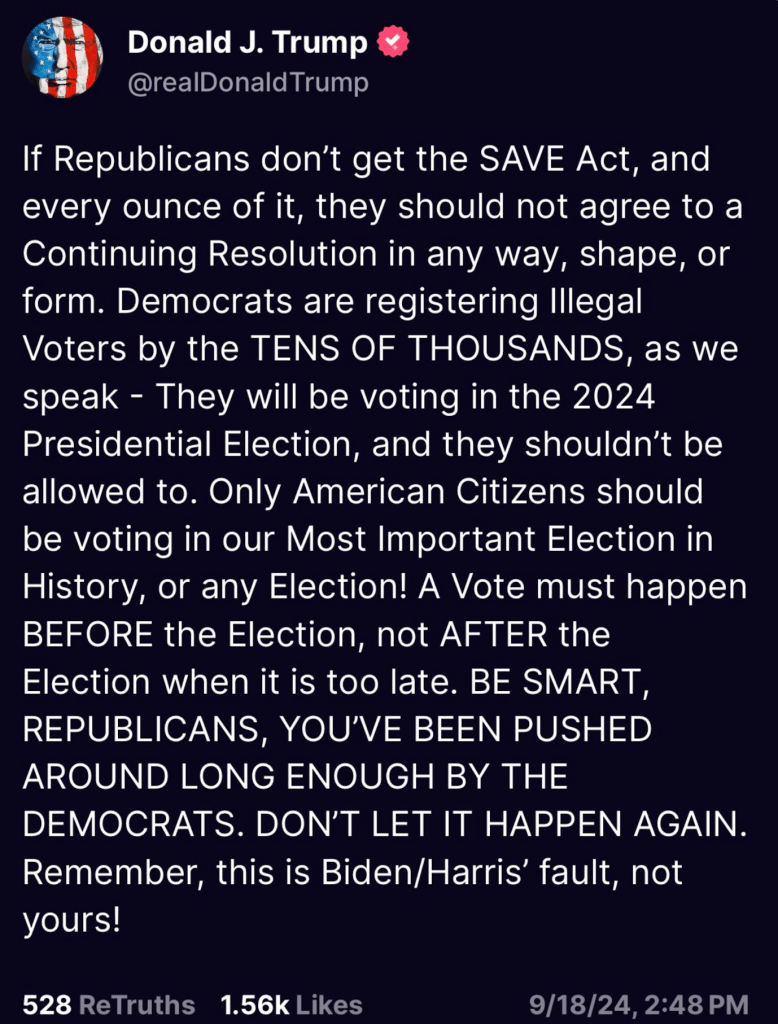 1. Trump Is Demanding Republicans Shut Down The Government Over A Bill That Makes It Illegal For Immigrants To Vote….Problem Is This Is Just A Political Stunt Because It Is Already Illegal!!