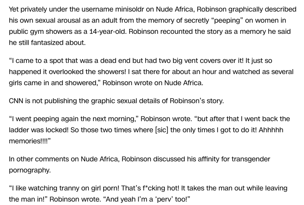 Now that these latest allegations against Robinson have surfaced. The portion of this expose that will garner the most attention is how he stated he preferred transexual pornography. Don’t get me wrong what a person’s sexual preferences are is entirely their own business. Whatever raises Robinson’s sail and floats his dinghy is none of my concern. It’s when you’re so openly homophobic and transphobic as the second-highest-ranking official in the state. Who not only supports but advocates for anti-LGBTQ+ laws with devastating impacts on young teens. Instead of being a productive role model to kids struggling with their sexuality. Robinson chose to vilify the entire LGTBQ+ community as he secretly had one foot in the door the whole time. So Robinson is more than deserving of any scrutiny he faces for just his latest example of blatant hypocrisy in a career built solely upon it.