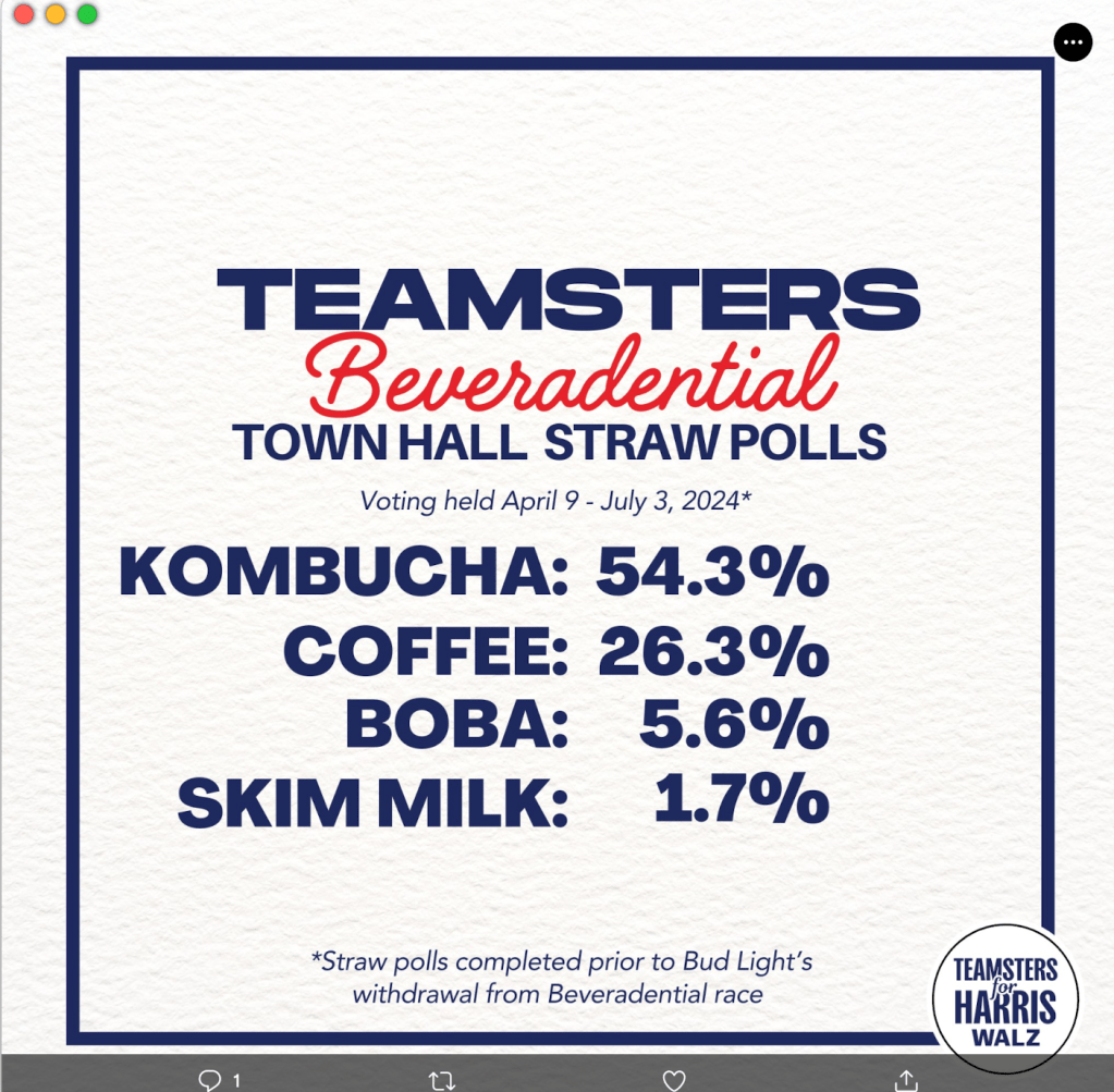 During his non-committal announcement to back neither Presidential candidate, O’Brien quoted internal polling results. He claimed the data showed Trump was favored by the rank-and-file members over Harris, 58%-31%. But immediately following his remarks a groundswell of support for Harris began to emerge, among local Teamster chapters. So much so that within 48 hours of the Teamster Boss’s politically hedging his bet. Over 1 million of the total 1.4+ million nationwide represented Teamsters were now endorsing Harris. Despite the national organization sitting this election out. That’s when questions started to arise about the confidence in Union’s leadership and the validity of the internal polling data.
