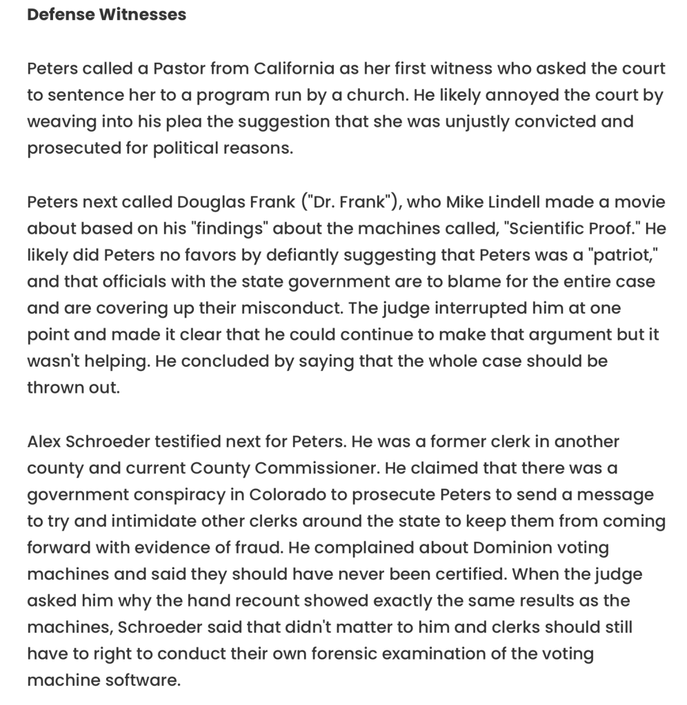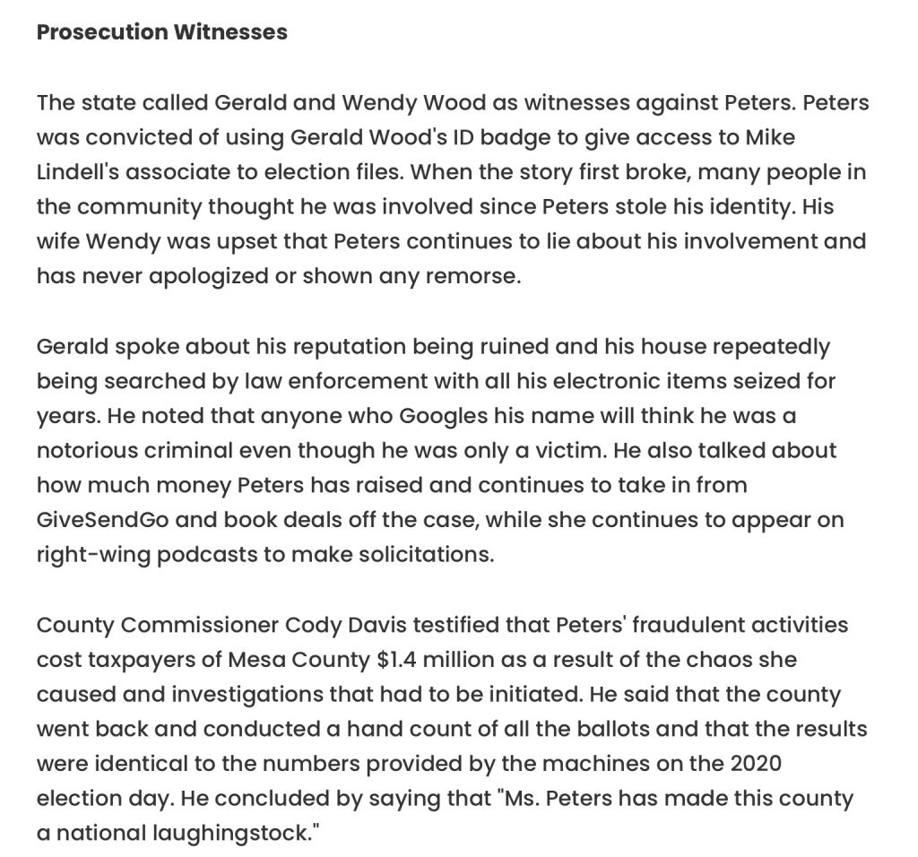 For The Entire Tina Peters Obnoxious Plea To The Judge Click Below But Be Warned It’s 40+ Minutes Of Self Entitled Lunacy