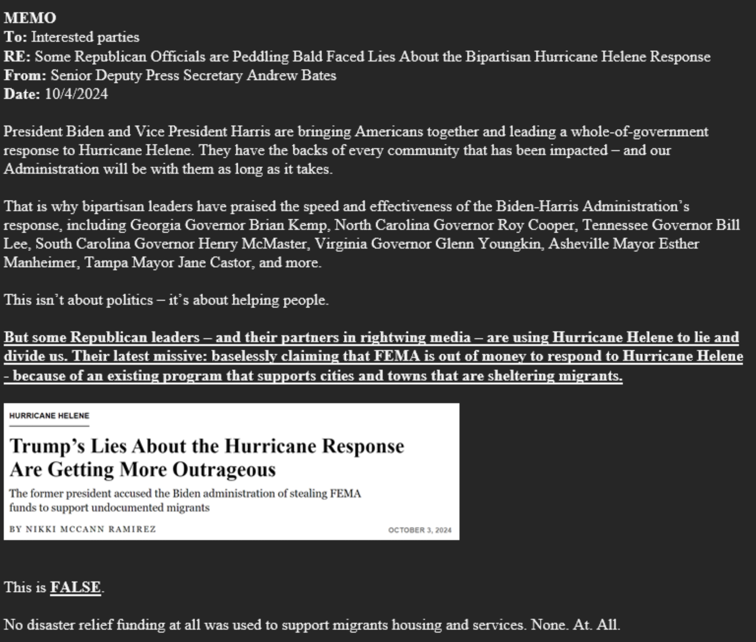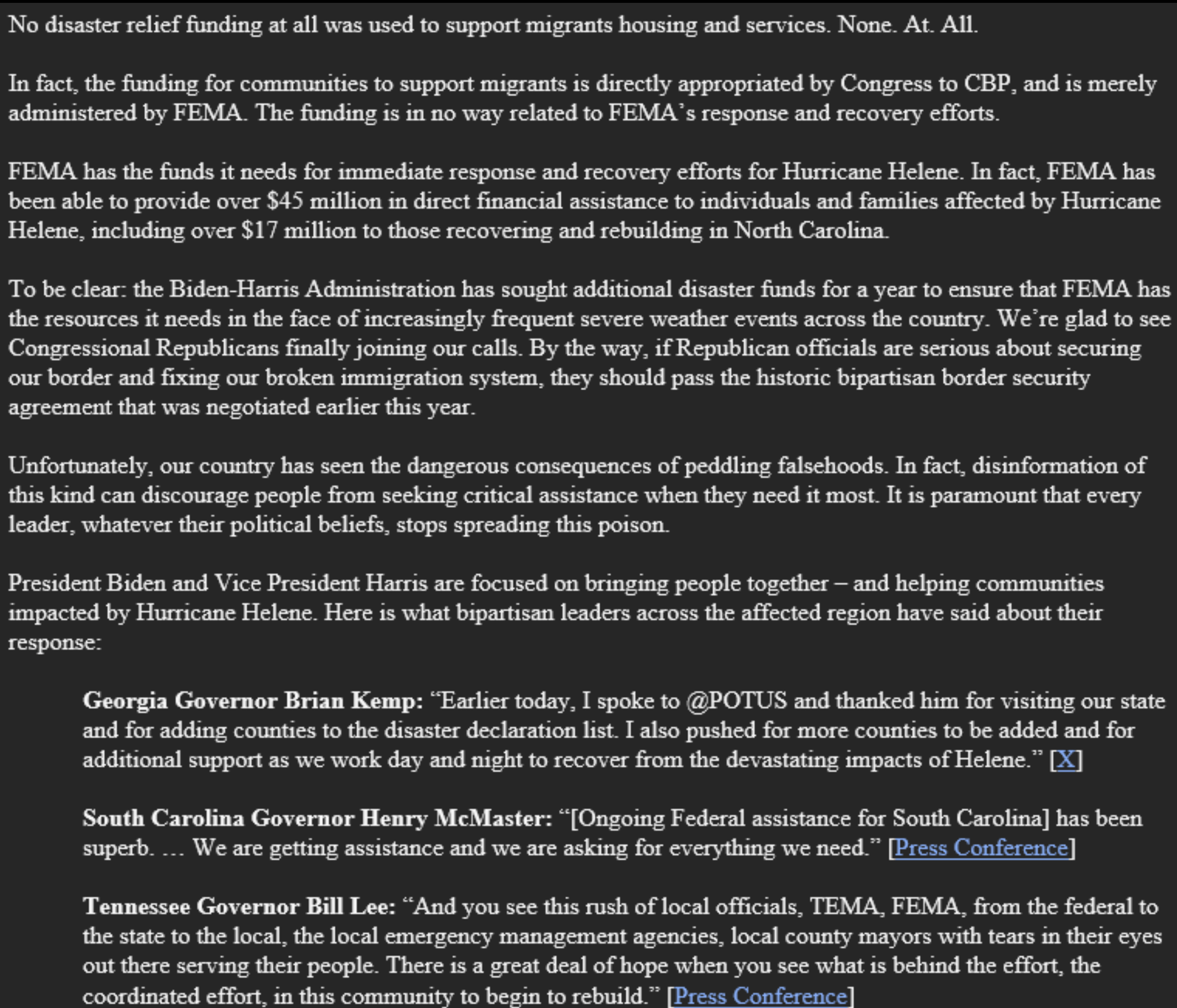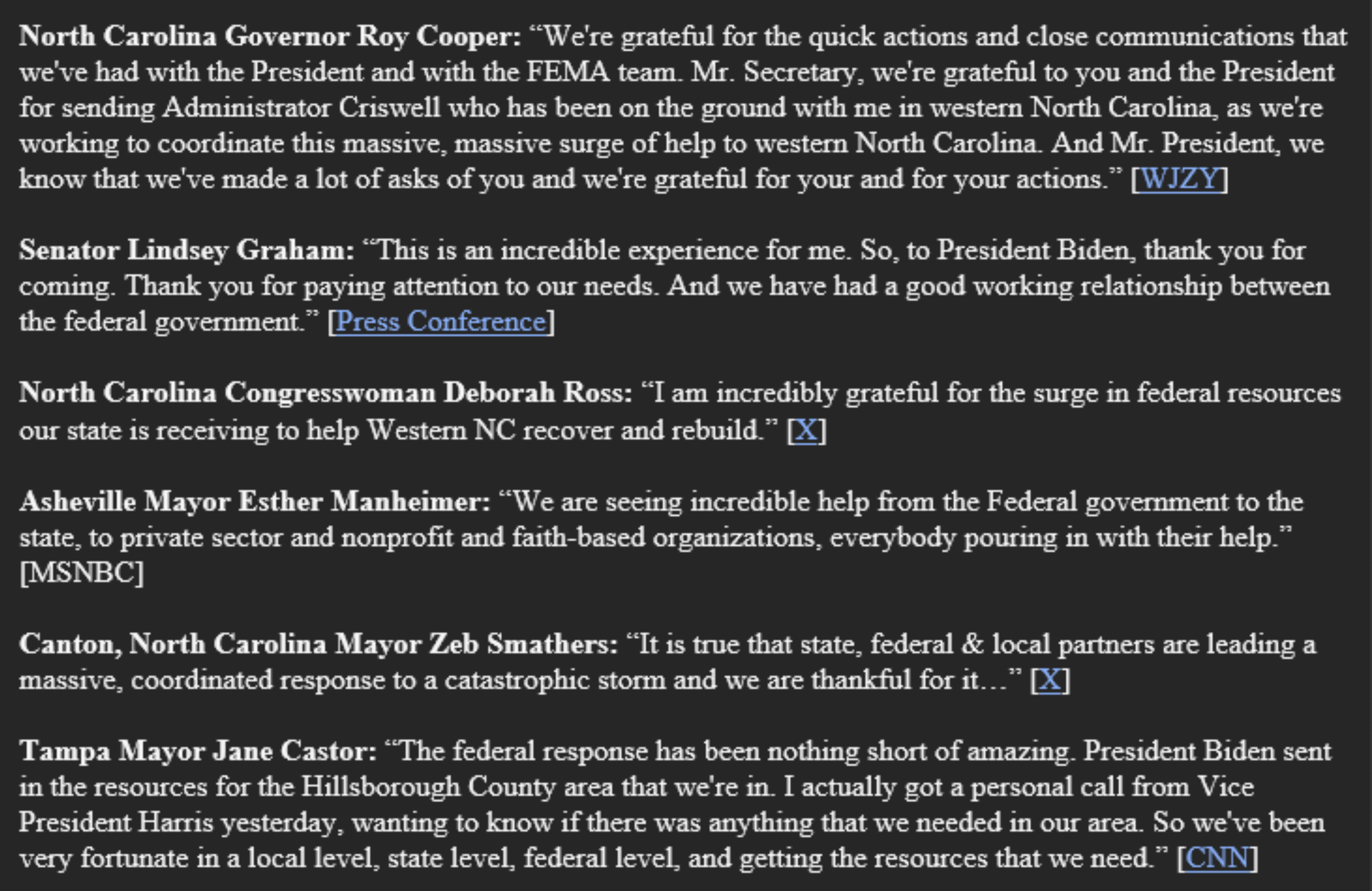 The Biden-Harris Admin Was Then Forced To Put Out A Press Release…With Testimonials From Each Republican Governor Affected By The Hurricane Alongside Other GOP Local And State Officials… To Stop Trump’s Damaging Rumors From Spreading Any Further