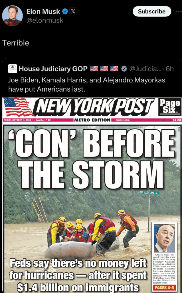 He Baselessly Claimed FEMA Was Nearly Broke… He Said Due To The Federal Government Misusing The Allocated Funds… To Build Mansions For Migrants Or Some Other Ludicrous Lie Along Those Lines