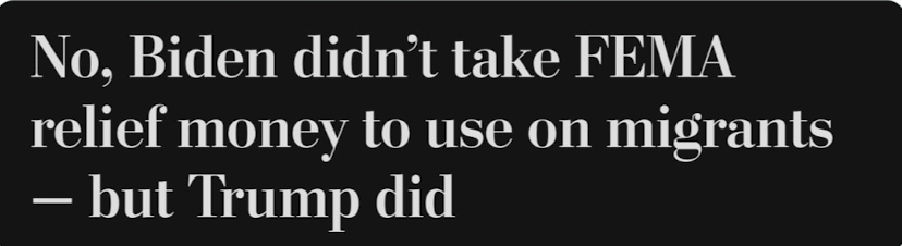 Trump was at it once again today. Continuing to lie about the Hurricane Helene disaster relief response by the Biden/Harris Administration. Doubling down on his ridiculous claims that FEMA Aid has been spent on immigrants.