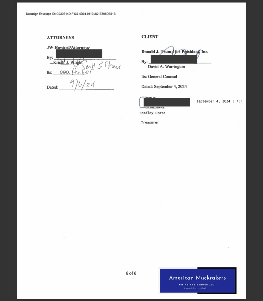 Leaked documents obtained by American Muckrakers indicate 11 days after RFK Jr gave Trump his endorsement. RFK Jr’s Law Firm JW Howard was secretly paid $100K by the Trump campaign.