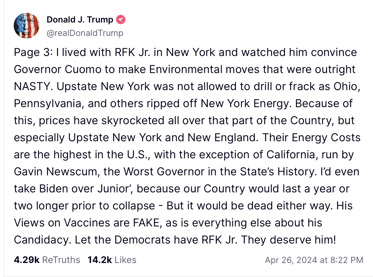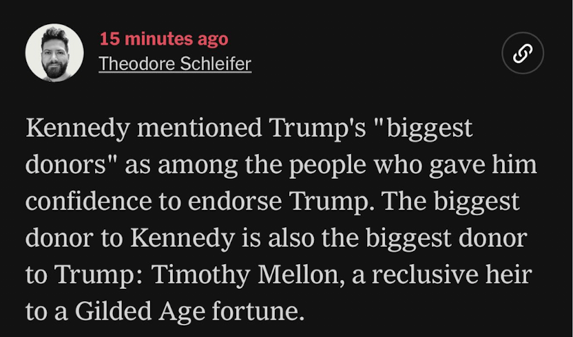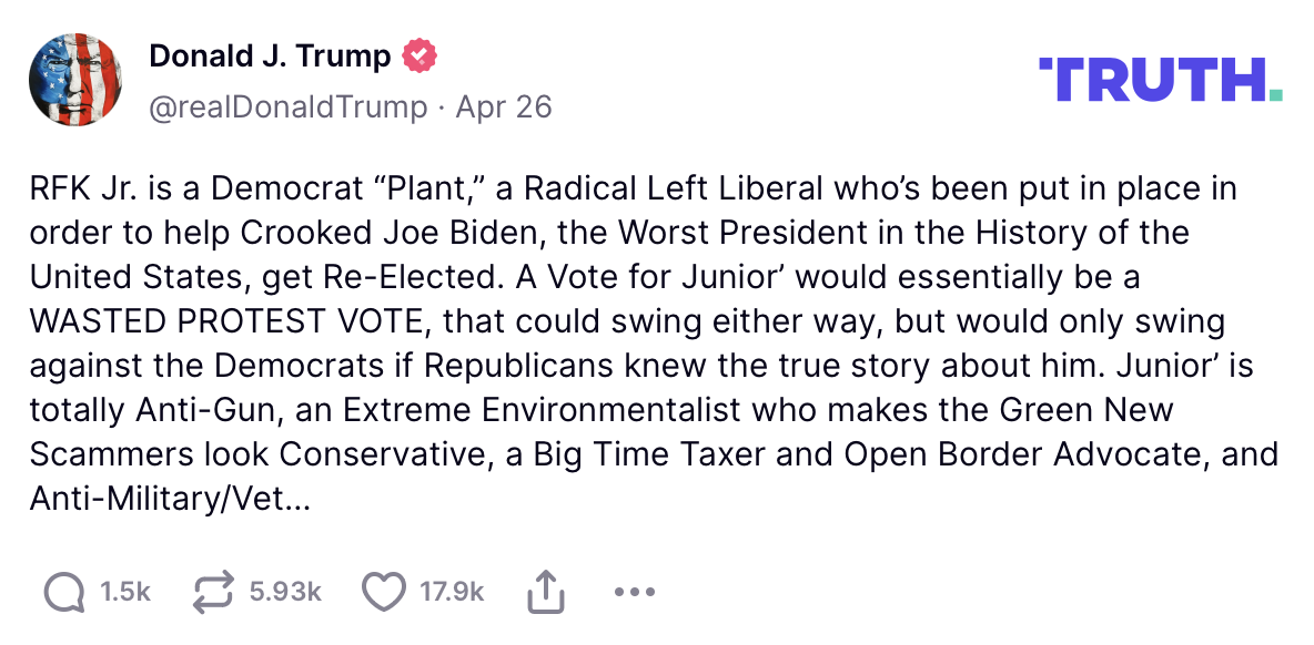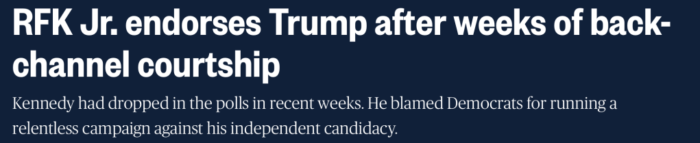 Which actually made RFK Jr a more attractive candidate for those right-wing nuts who were tired of Trump’s baggage.