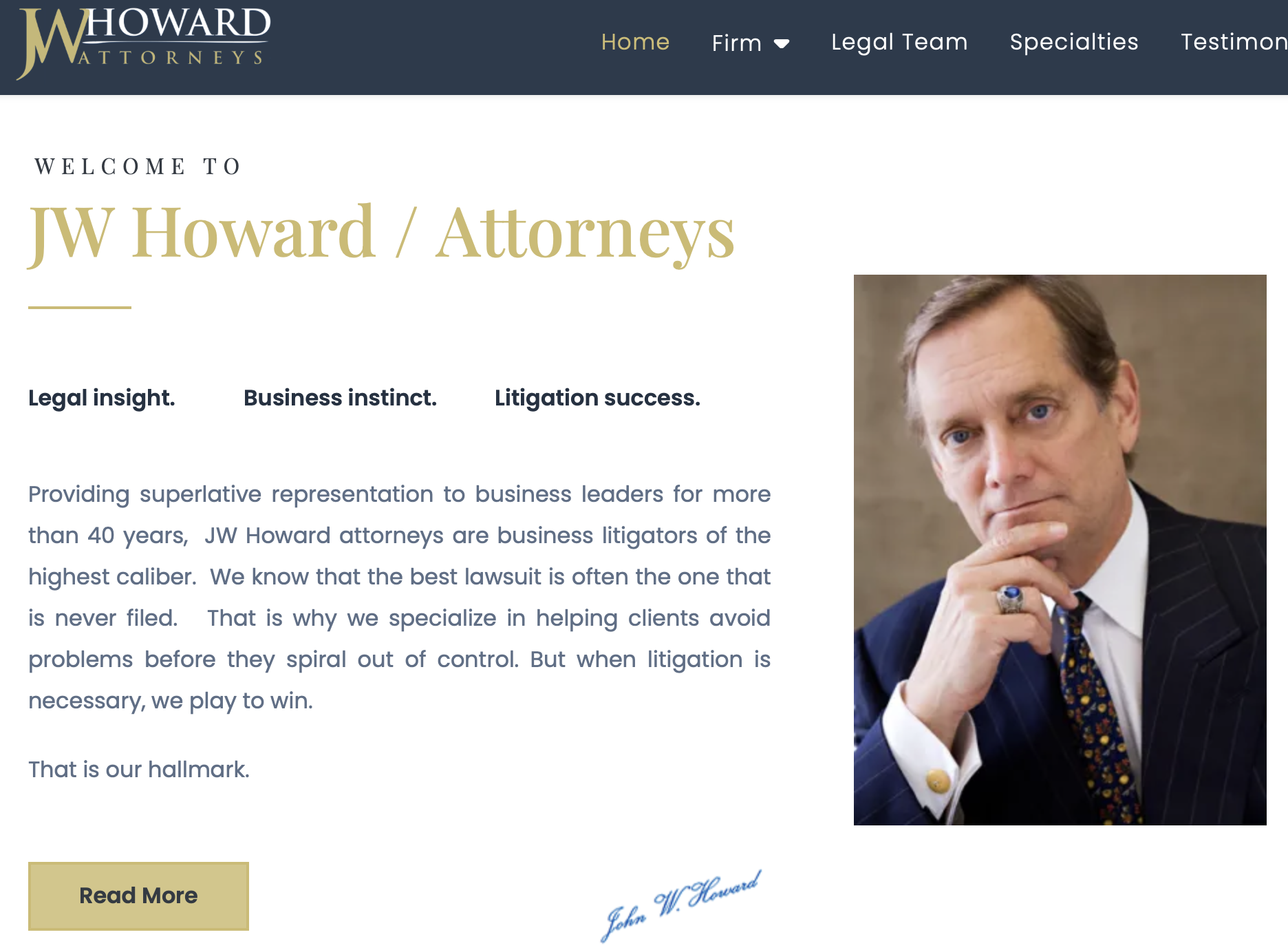 It’s rather odd that the contract states the scope of work as “Attorneys will provide…political/legal research regarding presidential candidate Kamala Harris”. After all JW Howard handles business/ corporate law not political or investigative services. So the task at hand appears to be out of the realm of their expertise.
