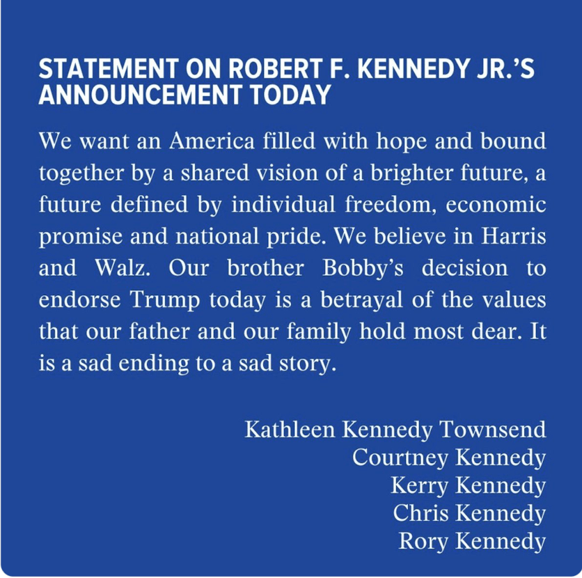 But RFK Jr was the furthest thing from a Democrat. That’s why his own family refused to endorse him. Choosing to back Biden/Harris because of his extremist views and MAGA tendencies.