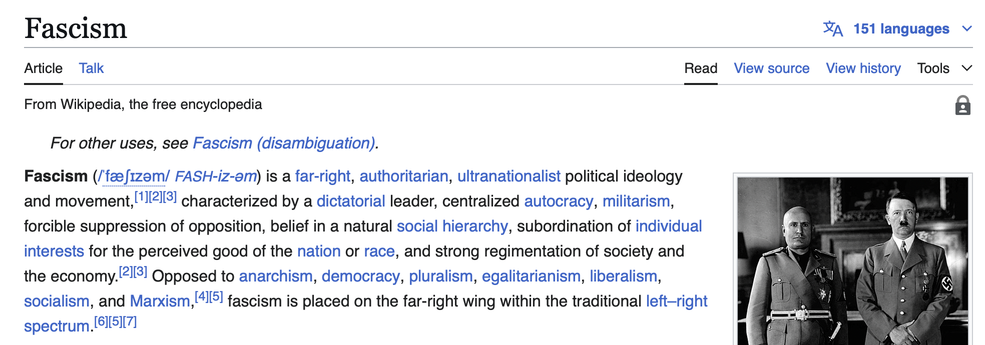 Trump’s own Chairman of The Joint Chief Of Staff (AKA the top Military mind in his administration) refers to Trump as “Now the most dangerous person to this country..” and “a total fascist”. When you compare Trump to the definition of fascism the only thing missing from the Wikipedia page is his full name and accompanying photo. Otherwise, it’s an exact copy-and-paste job from Trump’s personal bio from his “Future-Russian-Bride-Finder.biz” account homepage.